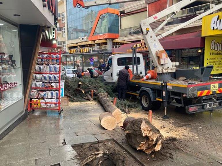 Saniyelerle ölümden dönen Demir’in yaşadığı panik ve ağacın devrildiği anlar, marketin güvenlik kamerasına anbean yansıdı. Olayın ardından bölgede kısa süreli tedirginlik yaşanırken, belediye ekipleri devrilen ağacı bulunduğu yerden kaldırdı.