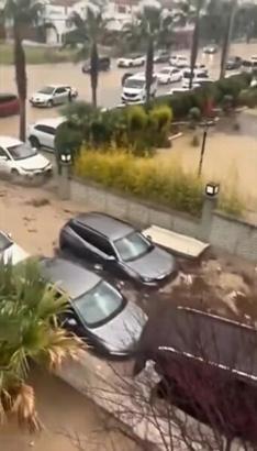 30 dakikalık sağanak kenti felç etti! Park halindeki araçlar sel sularına kapıldı