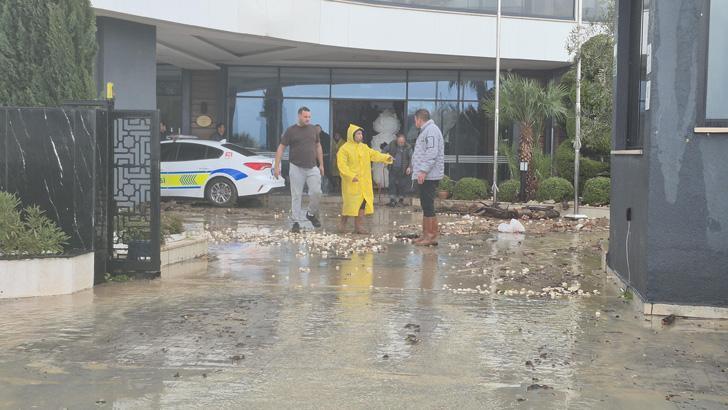 Kuşadası- Selçuk ile Kuşadası-Söke yollarında da trafik aksadı. Yüksek kesimlerden inen sel suları, Davutlar ve Güzelçamlı mahallelerinde taşkına neden oldu. Güzelçamlı Mahallesi’nde 5 yıldızlı bir otelin lobisi ile ev ve iş yerlerini su bastı. (DHA)