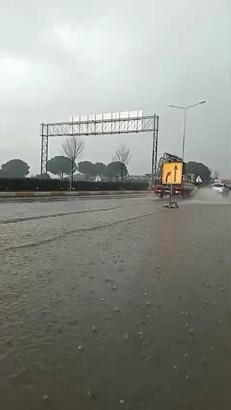 Kuşadası İlçe Emniyet Müdürlüğü önünde biriken su nedeniyle araçların geçişine kontrollü izin verildi.
