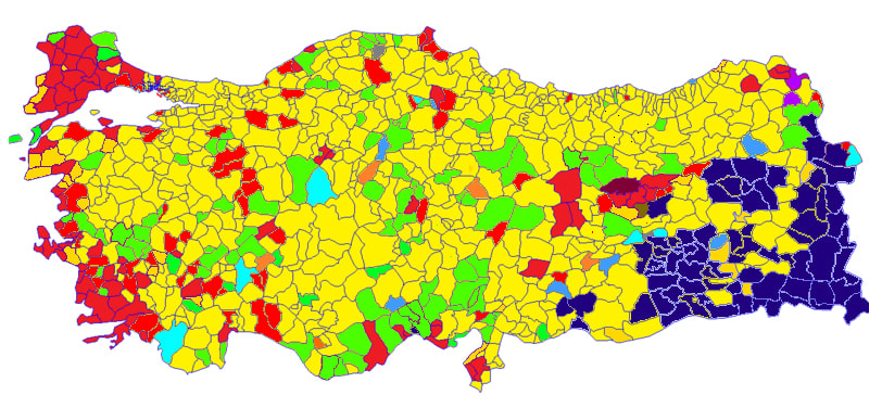 Bu veriler ışığında seçim sonuçları ilçe haritası 2019 yılına göre şöyle değişti: