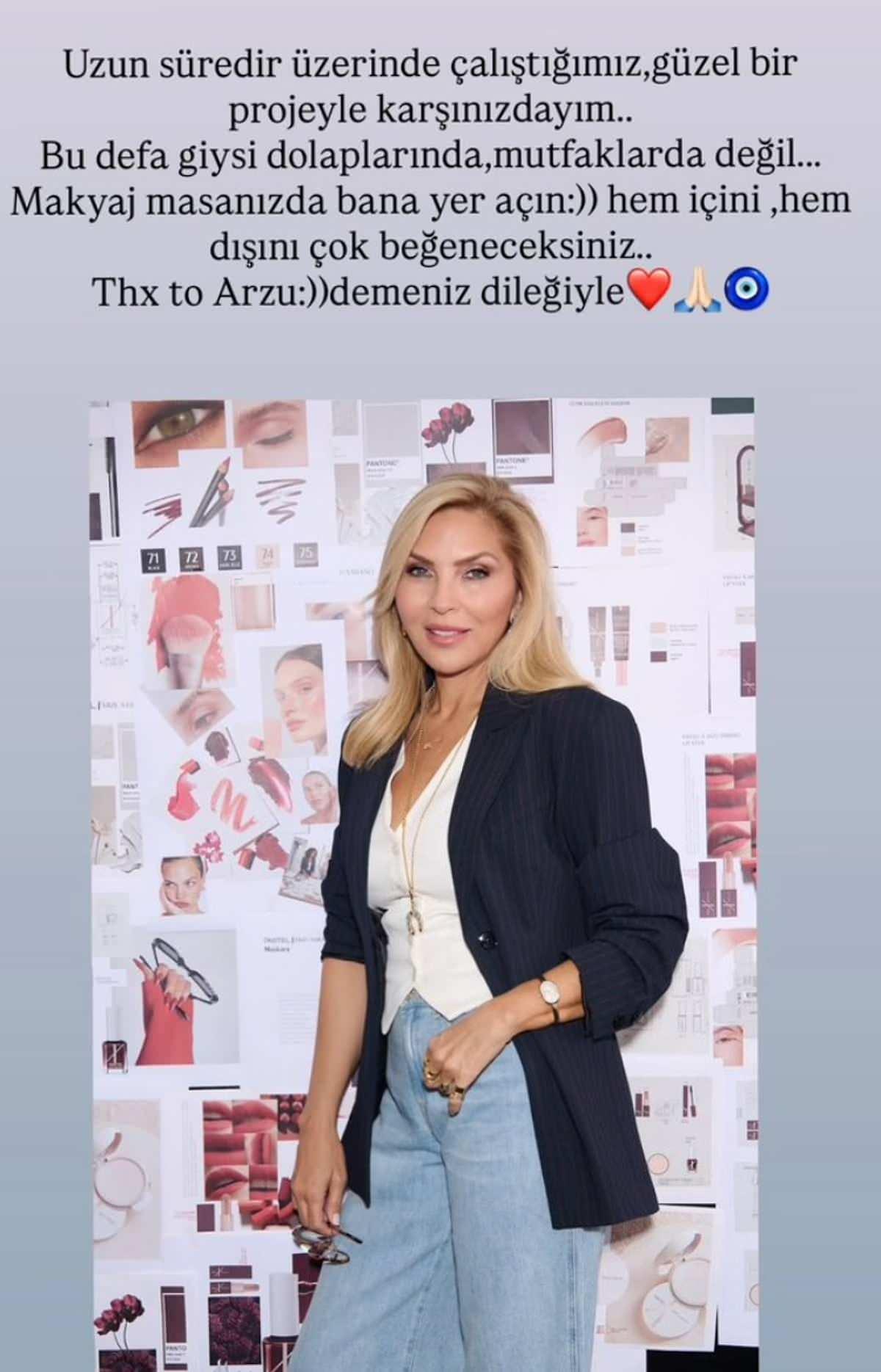 Sosyal medyadan yaptığı paylaşımda, “makyaj masanızda bana yer açın” diyerek kozmetik tarafına girişini duyuran Arzu Sabancı, Türkiye’nin yerli makyaj markalarından biriyle iş birliğine imza attı.