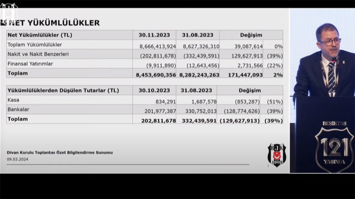 30 Kasım 2023 tarihi itibarıyla, Beşiktaş Kulübü’nün borcu 8 milyar 453 milyon 690 bin lira olarak açıklandı.