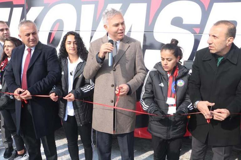 Törende konuşan Kaymakam Mustafa Akın, “Allah otobüsümüzün tekerine taş değdirmesin. Sayın Cumhurbaşkanımıza şükranlarımızı sunuyoruz. İlçemize çok güzel bir otobüs kazandırıldı. Bu destek, kızlarımızın başarısının bir sonucudur. İnşallah nice şampiyonlukları bu otobüste kutlayacağız” dedi.