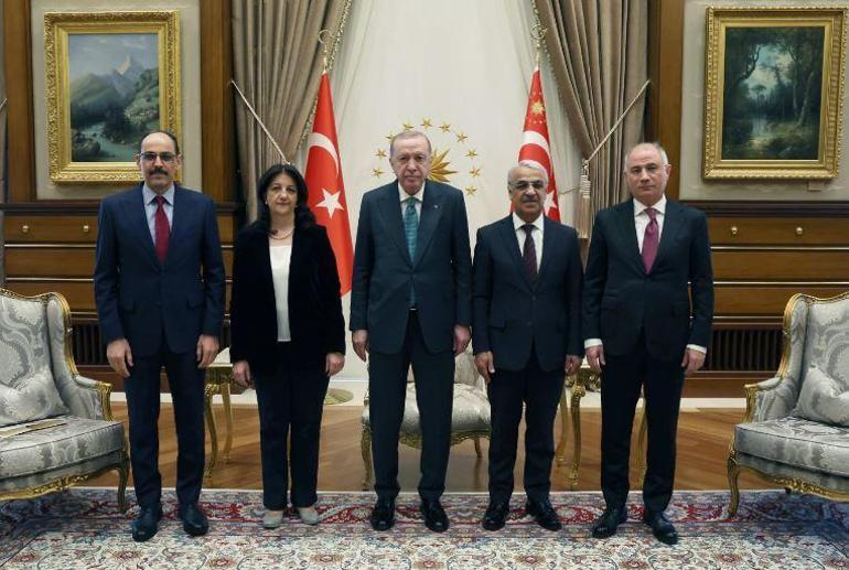 Cumhurbaşkanlığı Külliyesi’nde gerçekleşen kabulde, AK Parti Genel Başkan Vekili Efkan Ala ile Milli İstihbarat Teşkilatı (MİT) Başkanı İbrahim Kalın yer aldı. Saat 15.00’te başlayan kabul, basına kapalı şekilde gerçekleştirildi. Yaklaşık bir saat süren görüşmeye ilişkin, DEM Parti heyeti, açıklama yaptı.