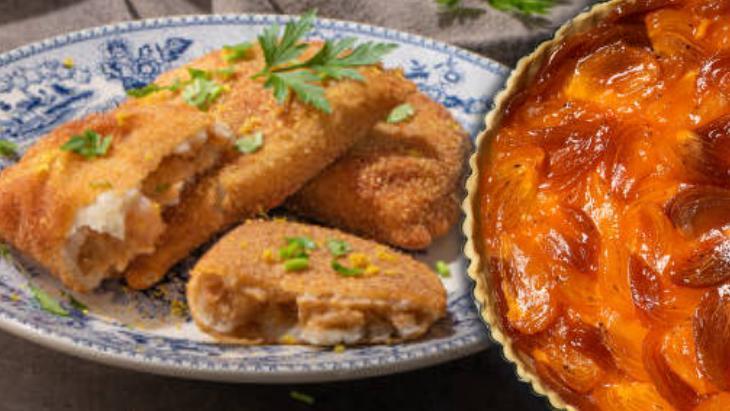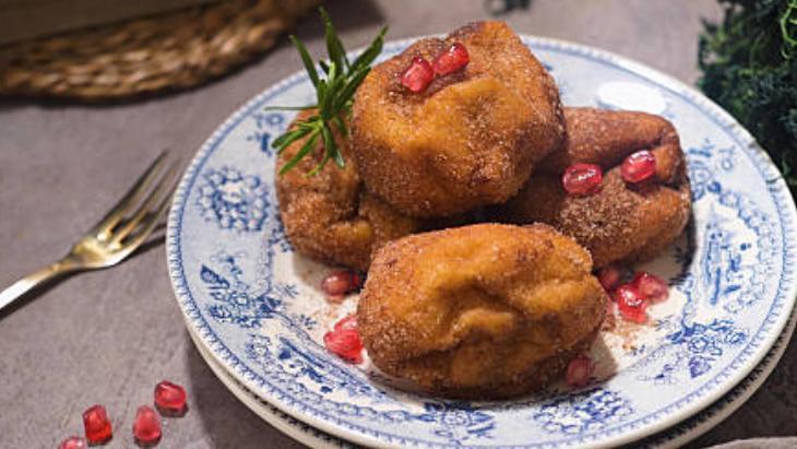 Hamuru için 3 su bardağı un, 3 yemek kaşığı tereyağı (soğuk), 1 yemek kaşığı elma sirkesi, ¾ su bardağı soğuk su gerekiyor. İç harcı için 2 adet cennet hurması, 1 adet elma, 1 adet muz, 2 yemek kaşığı toz şeker, ½ çay kaşığı tarçın, ¼ çay kaşığı toz zencefil, ¼ çay kaşığı muskat cevizi rendesi yeterli olacak. Kızartmak için de ½ su bardağı sıvı yağ ve son olarak üzeri için ½ su bardağı toz şeker, 1 tatlı kaşığı tarçın gereken malzemelerdir.