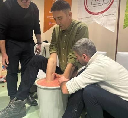 Guinness Rekorlar Kitabı’na göre 2 metre 51 santimetrelik boyuyla “dünyanın yaşayan en uzun insanı” unvanını koruyan Mardinli Sultan Kösen’in İstanbul’da düzenlenen bir etkinlikte “Konuşan Eller” projesi için el kalıbı çıkarıldı.
