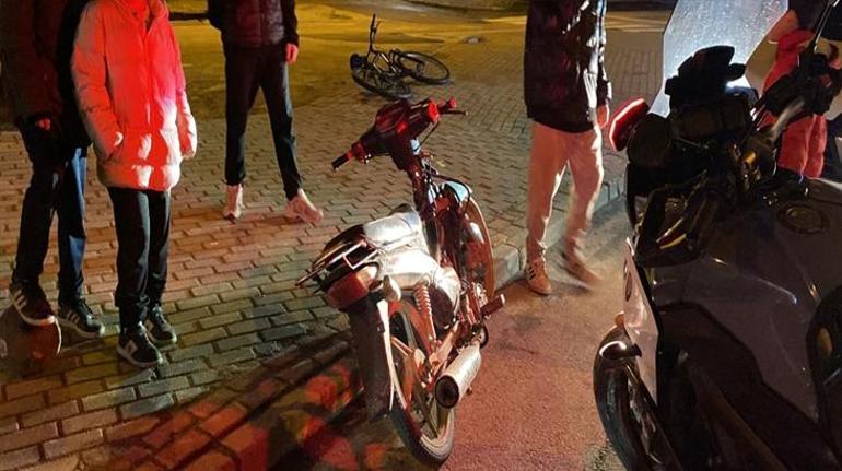 Motosiklet çekici yardımıyla otoparka götürülürken, kaçan sürücünün yakalanması için çalışmalar sürüyor.