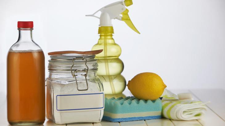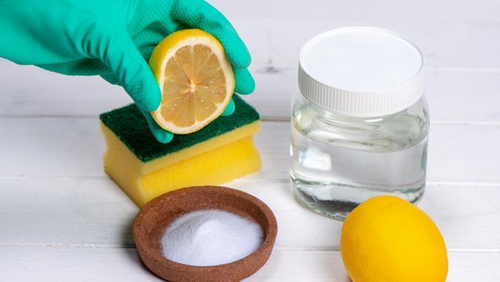 Bir taze limon, iki adet bez ve beyaz sirke ya da bulaşık deterjanını yanınıza alın.