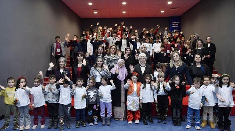 Okula gelişlerinde çocuklar tarafından çiçeklerle karşılanan Emine Erdoğan ve Wan Azizah İsmail, seymen ekibinin gösterisini izledi.