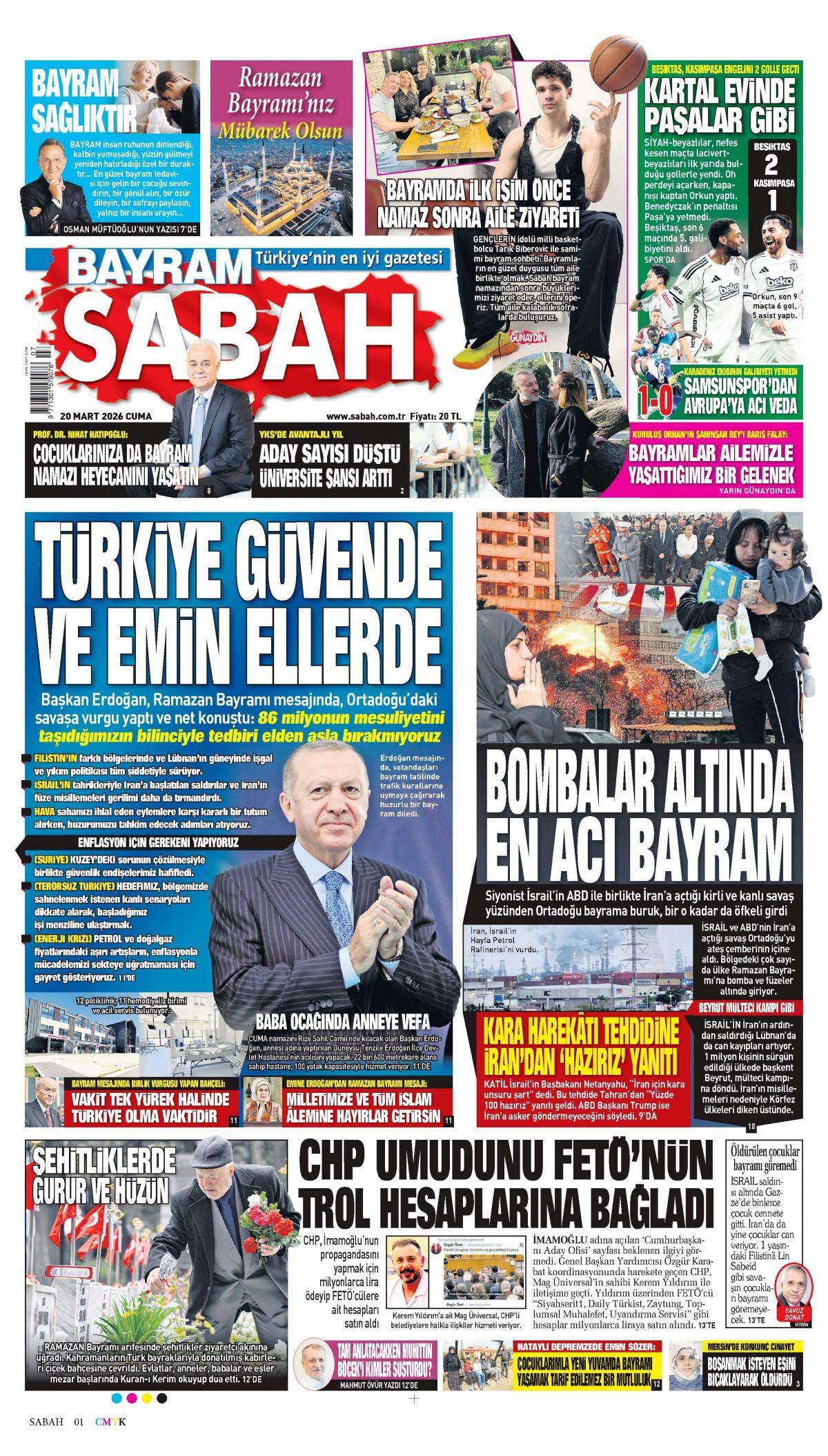 Sabah Gazetesi 20 Mart 2026 Günü Manşeti