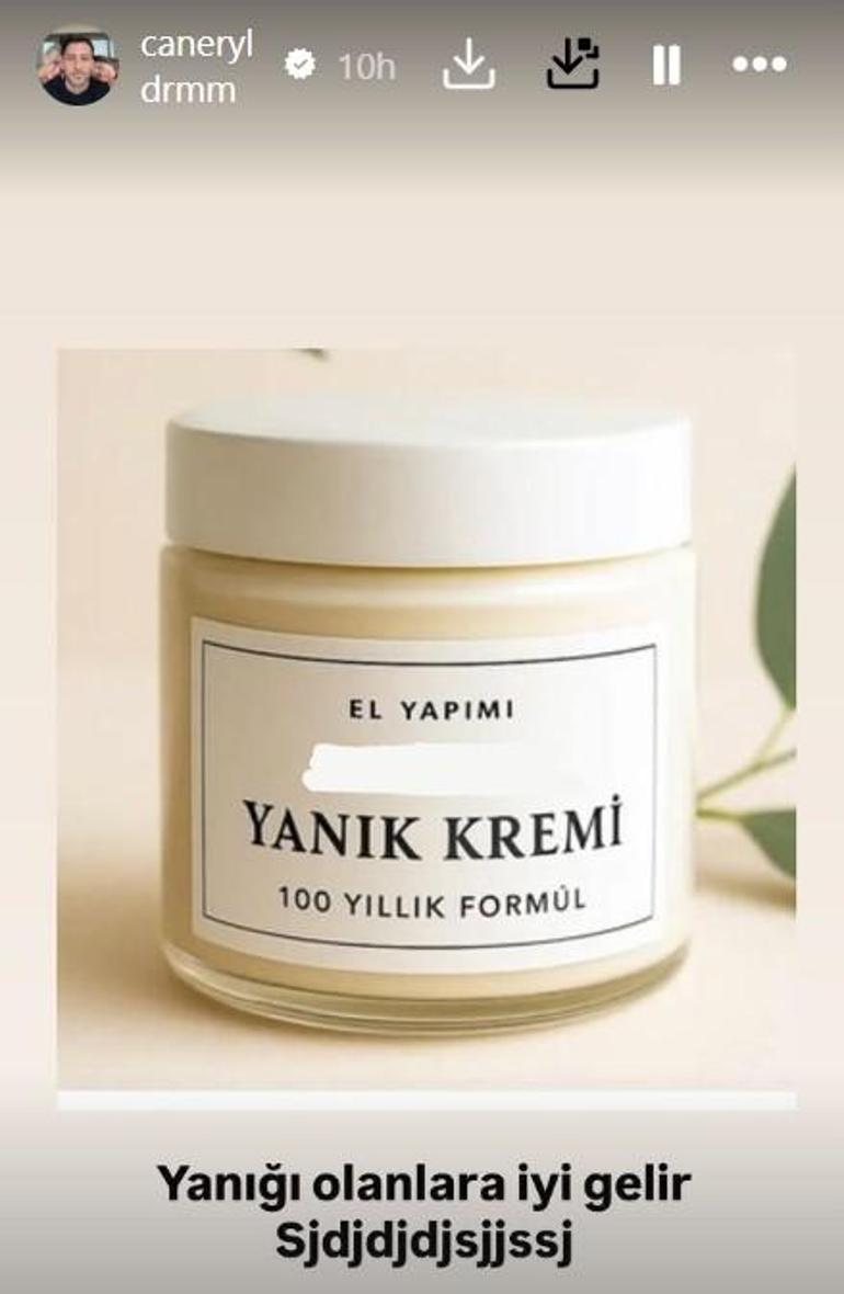 Ünlü ismin eşi daha sonra yaptığı paylaşımda yanık kremi paylaşarak altına: ‘Yanığı olanlara iyi gelir’ yazdı.