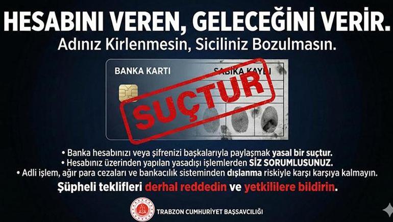 TRABZON CUMHURİYET BAŞSAVCILIĞI’NDAN IBAN KULLANDIRMA UYARISI