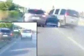 Taşucu açıklarında çifte hortumu gören çevredekiler, o anları cep telefonu kamerasıyla görüntüledi.