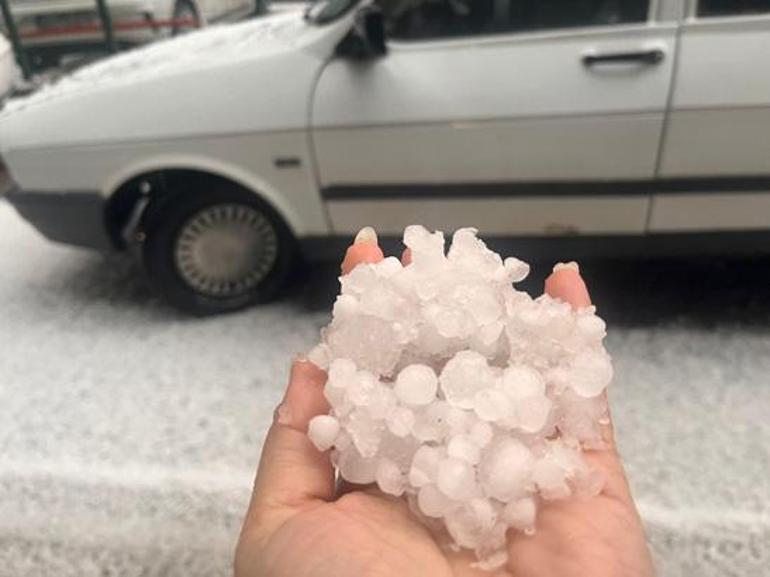 Meteoroloji Genel Müdürlüğü’nün uyarısının ardından ilçede dolu yağışı etkili oldu.