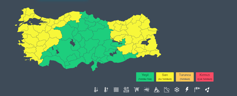 Meteoroloji Genel Müdürlüğü tarafından yapılan tahminlere göre: Ülkemiz genelinin parçalı ve çok bulutlu, Marmara, Ege, Akdeniz, Batı Karadeniz (Sinop hariç), Güneydoğu Anadolu’nun batısı ile Eskişehir, Çankırı, Ordu, Rize ve Artvin çevrelerinin yağmur ve sağanak yağışlı, Doğu Anadolu’nun doğusunun karla karışık yağmur ve kar yağışlı geçeceği tahmin ediliyor. Yağışların; Marmara’nın güney ve batısı ile Kıyı Ege’de yerel kuvvetli olması bekleniyor. Sabah ve gece saatlerinde iç ve doğu kesimlerde buzlanma ve don olayı ile birlikte pus ve yer yer sis bekleniyor.