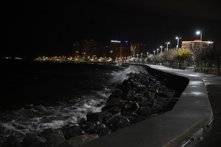 Sahil şeridinde gece yürüyüşüne çıkan ve balık tutan vatandaşlar, fırtına nedeniyle zaman zaman zor anlar yaşadı.