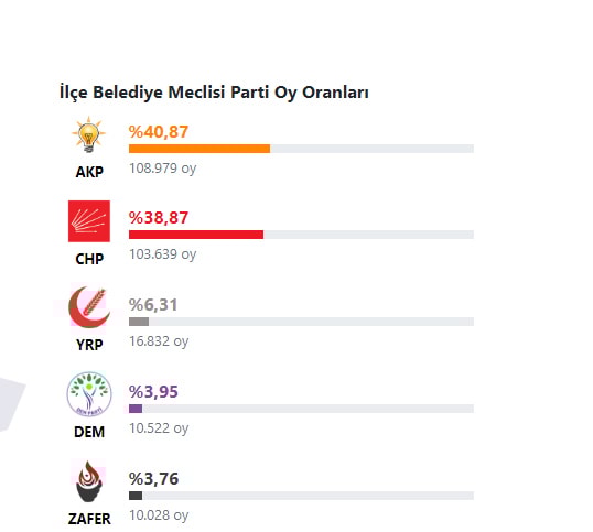CHP’nin adayı Hakan Bahçetepe 636 oy farkla AKP’li rakibi Hasan Tahsin Usta’yı geride bırakırken meclis üstünlüğü AKP’de kaldı.