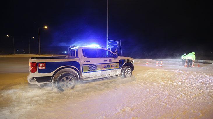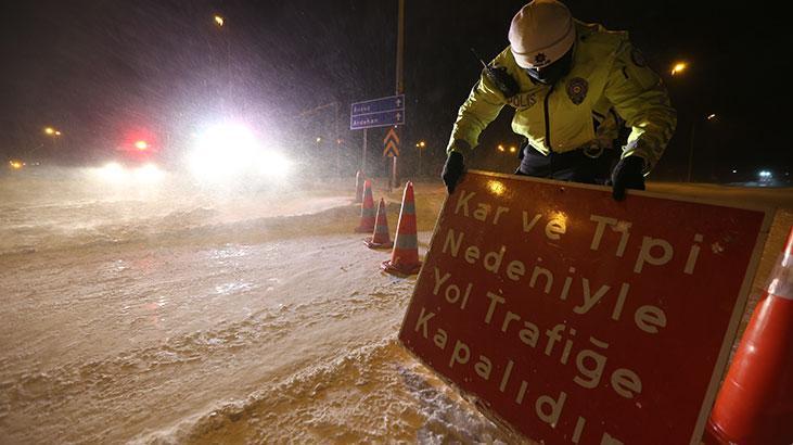 Kars’ın çıkış noktasında polis ekipleri şerit çekerek yolu ulaşıma kapattı. “Kar ve tipi nedeniyle yol trafiğe kapalıdır” tabelasını yola koyan ekipler, yolu kullanacak sürücüleri geri gönderdi.