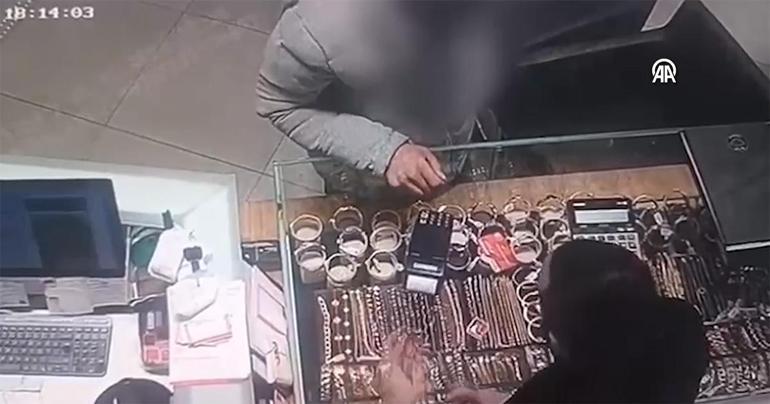 Güvenlik kamerasına yansıyan görüntüde, şüphelinin vatandaşın hesabından aktardığı parayla altın aldığı görülüyor.