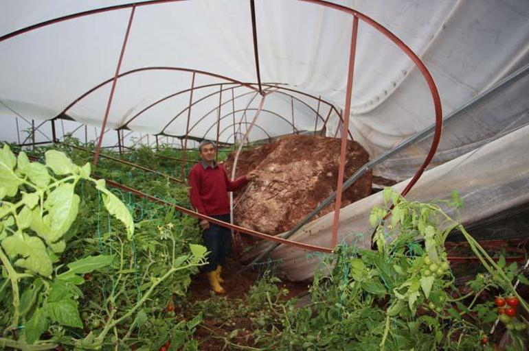 Serasının üzerine kaya parçası düşen domates üreticisi Ercan Balcı ise yaşadığı zararı anlatarak, “Saat 12.00 gibi yamaçtan göçtü geldi, heyelan serayı yerle bir etti. Zayiat fazla, belediyeden yardım istiyorum. Kayayı, taşı, toprağı kaldıp atmak için kendi gücüm ve imkanım yetmiyor. Hafriyat kaldırıldıktan sonra kendi imkanlarımla seramı yeniden kurarım, yeniden üretime devam ederim” diye konuştu.