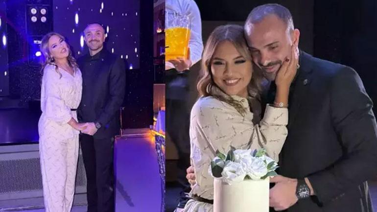 Çiftin romantik kutlamasında özel bir pasta da dikkat çekti. Paylaşıma kısa sürede binlerce beğeni ve yorum geldi.