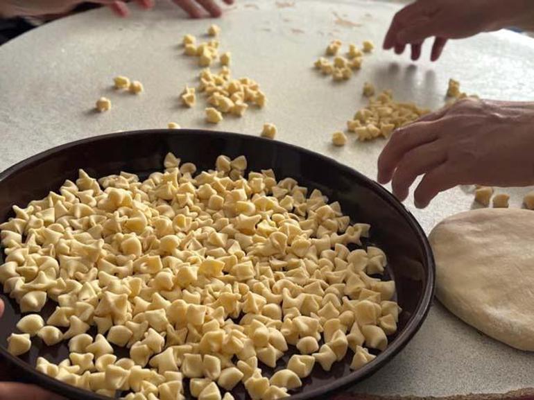 Bu sofralar için her yıl komşularla toplanıp hazırlık yaptıklarını anlatan Şinik, “Komşularla bir araya gelip mantı büküyoruz. Önceden yapıp dolaba koyuyoruz ki o gün geldiğinde rahatça pişirebilelim. Büyüklerimizden böyle gördük. Hem bereketli oluyor komşularımızla yaptığımız için hem de imece usulü oluyor.” dedi.
