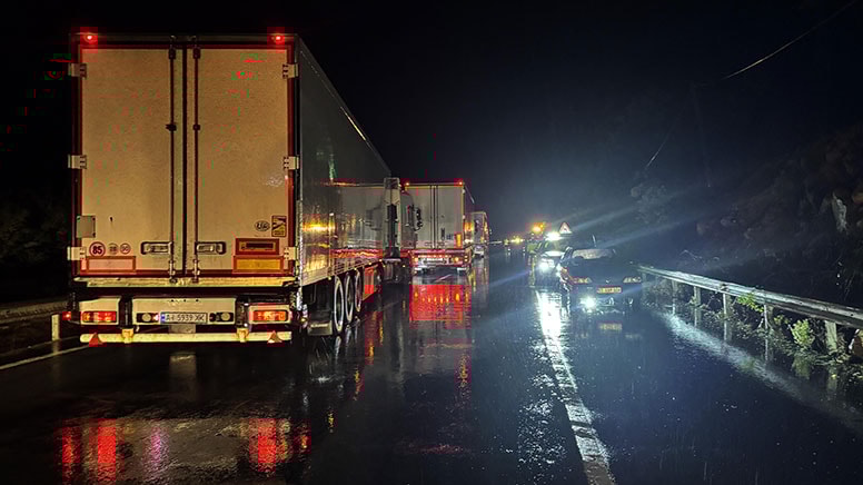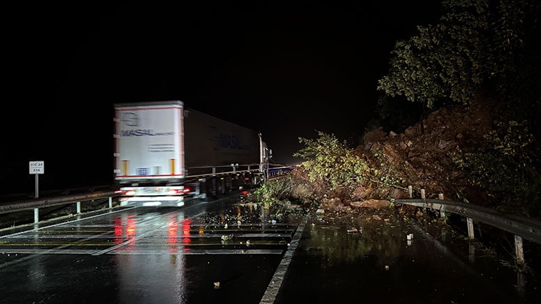 Heyelan anında yoldan geçen 3 araçta taş çarpması sebebiyle maddi hasar oluştu.