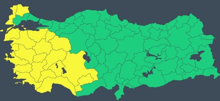Bakanlığın NSosyal hesabından, Meteoroloji Genel Müdürlüğünden alınan son bilgiler doğrultusunda “sarı” kodla işaretlenen illerin yer aldığı Türkiye haritası paylaşıldı.