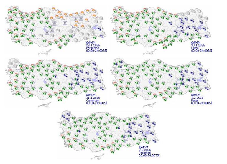 Paylaşımda, bugün Malatya, Elazığ, Adıyaman, Şanlıurfa’nın kuzeyi, Diyarbakır, Batman, Mardin, Siirt’in güneydoğusu, Hakkari ve Şırnak çevrelerinde kuvvetli sağanak, Malatya ve Elazığ’ın güneyi, Diyarbakır’ın kuzeyi, Hakkari ve Şırnak çevrelerinde yüksek kesimlerde karla karışık yağmur ve kar şeklinde yağış beklendiği belirtildi.