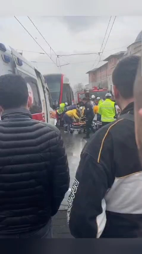 T1 Kabataş-Bağcılar seferini yapan tramvay, dün Laleli Durağı yakınlarında motosikletli İsmail Kurt’a çarpmıştı. Raylar ile tramvay arasına sıkışan motosiklet sürücüsü, itfaiye ekiplerince kurtarılmıştı.
