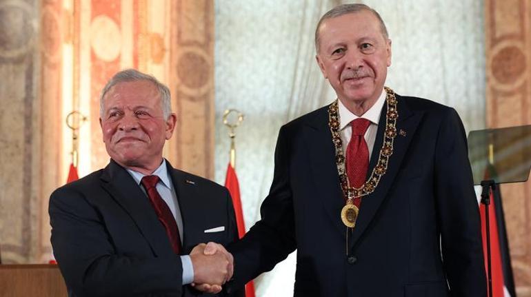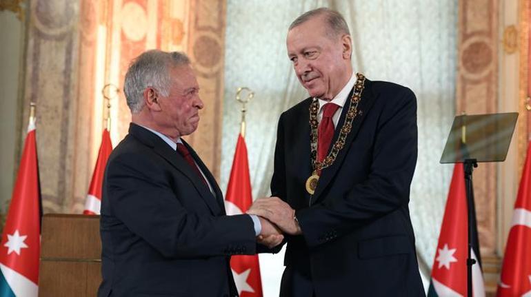 Kral 2. Abdullah, görüşme sonrası Cumhurbaşkanı Erdoğan’a “Hüseyin bin Ali” devlet nişanı takdim etti.
