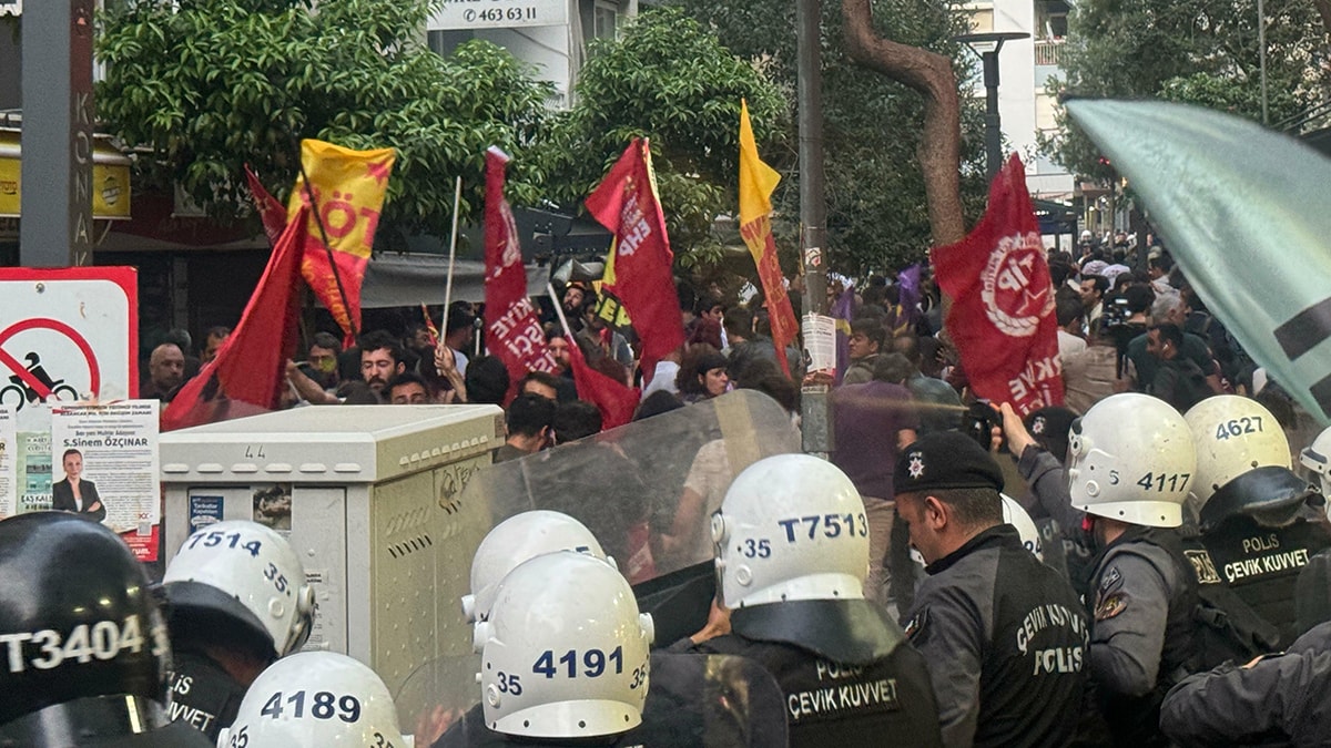 Van İl Seçim Kurulu’nun 31 Mart 2024’de yapılan yerel seçimlerde, kesin olmayan sonuçlara göre Van Büyükşehir Belediye Başkanı olarak seçilen Halkların Eşitlik ve Demokrasi Partisi (DEM) adayı yüzde 55 oranında oy alan Abdullah Zeydan’ın yerine, yüzde 27 oy alan ikinci sıradaki AKP adayını belediye başkanı olarak belirlemesi üzerine karara tepki gösteren İzmir Emek ve Demokrasi Güçleri, Alsancak Türkan Saylan Kültür Merkezi önünde basın açıklaması yaptı.