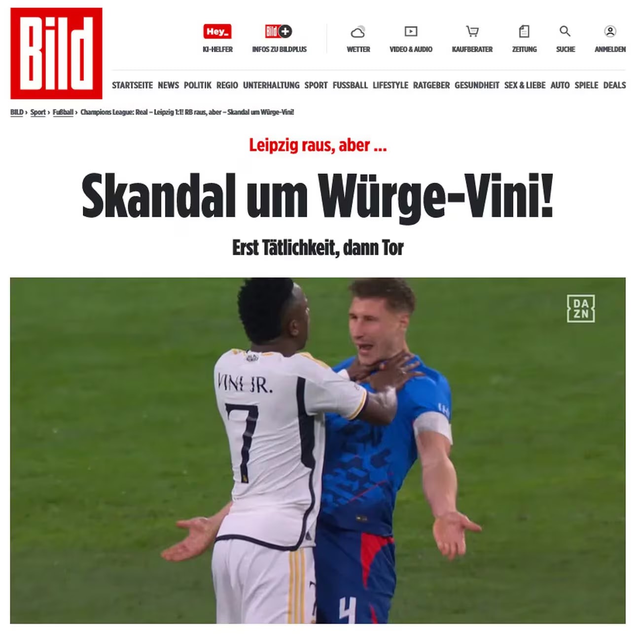Hem enerji içeceği devi Red Bull’un sponsor olduğu takımın oyuncuları hem de Federal Cumhuriyet’in önde gelen gazeteleri, Leipzig kaptanı Willy Orban’ı boynundan yakalayan ve kısa bir süre sonra da takımını çeyrek finale taşıyan golü atan Vinicius’un neden oyundan atılmadığını anlayamadı.