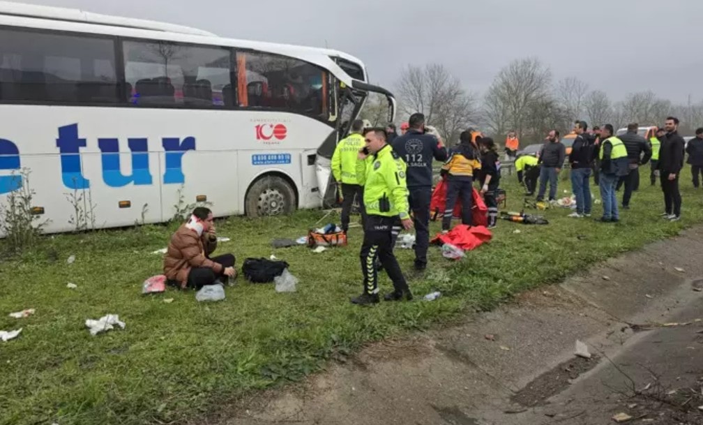 Düzce’de gerçekleşen kaza, saat 13.30 sıralarında Anadolu Otoyolu’nun Düzce Türsan Tesisleri mevkiinde meydana geldi. Ankara istikametine giden Efe Tur firmasına ait sürücüsünün ismi öğrenilemeyen 41 FM 831 plakalı yolcu otobüsü, sürücüsünün direksiyon kontrolünü kaybetmesi nedeniyle yol kenarındaki bariyerlere çarptı. Kazayı görenlerin ihbarı üzerine olay yerine acil sağlık, AFAD, itfaiye ve polis ekipleri sevk edildi.