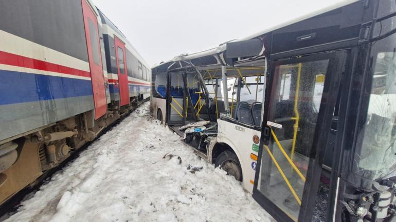 Yolcu treni, hemzemin geçitte belediye otobüsüne çarptı